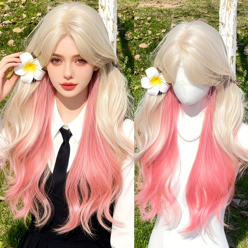 22-inch European and American Fashion Center-parted Large Wave Light Blonde Full Head Wig with Natural Luster and Smooth Texture, Perfect Accessory for Daily Wear, Parties, Festivals, and Vacation Styling -